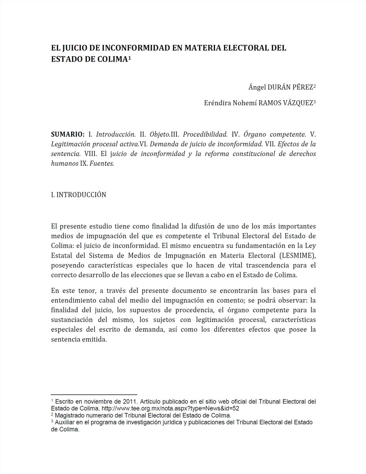 El juicio de inconformidad en materia electoral del Estado de Colima