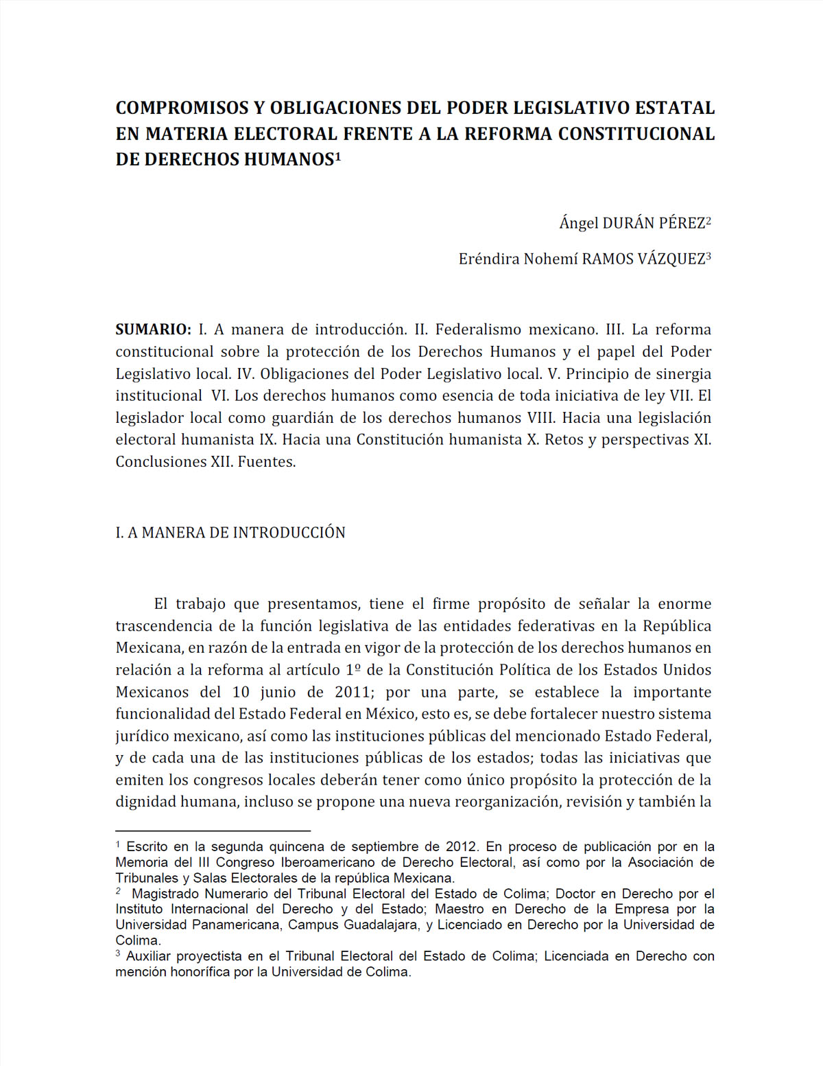 Compromisos y obligaciones del Poder Legislativo Estatal en materia electoral frente a la Reforma Constitucional de Derechos Humanos