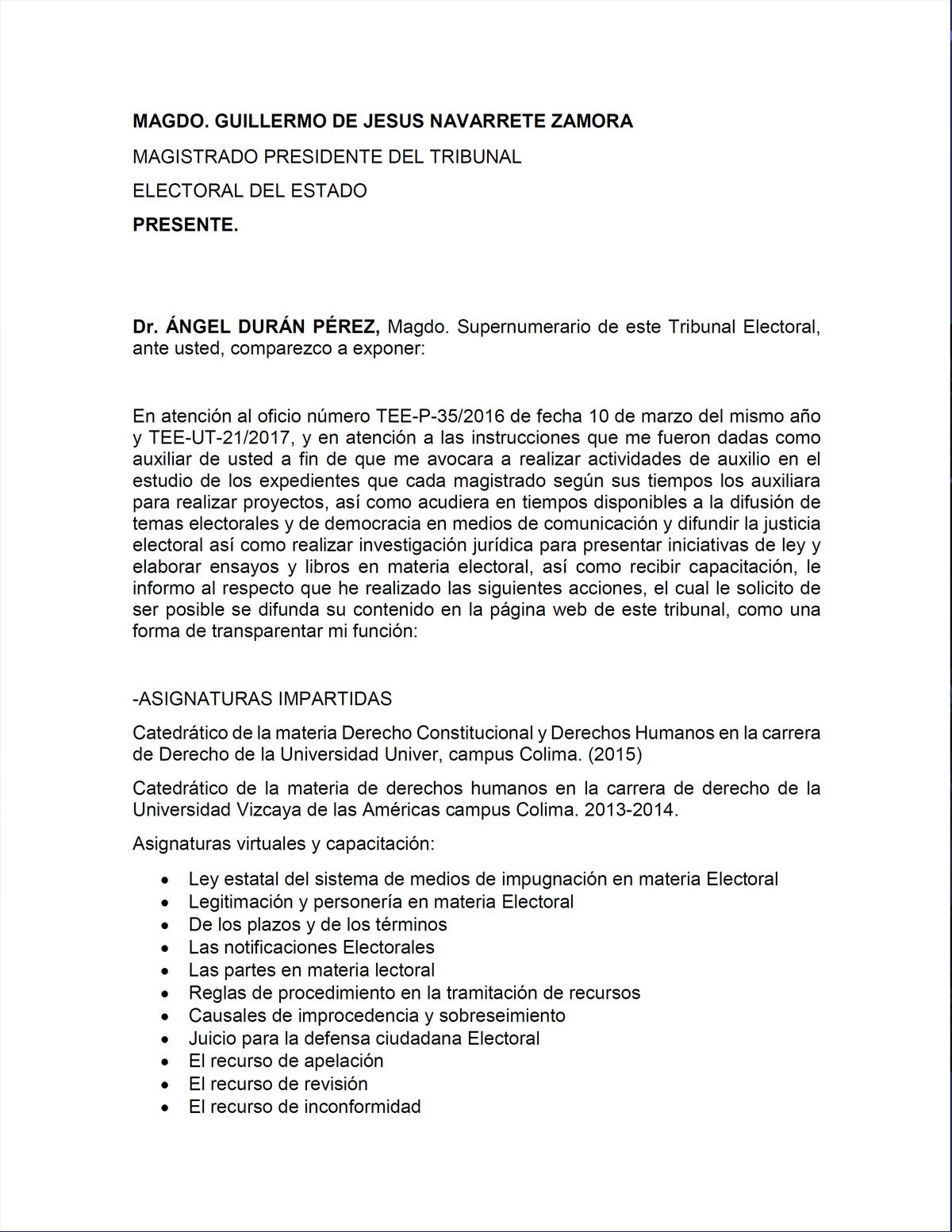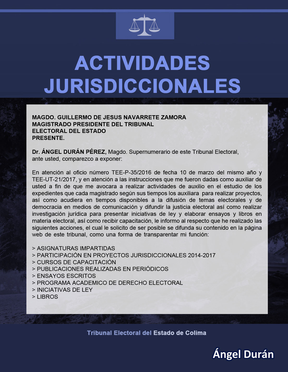 Actividades Jurisdiccionales del Magistrado Dr. Ángel Durán Pérez