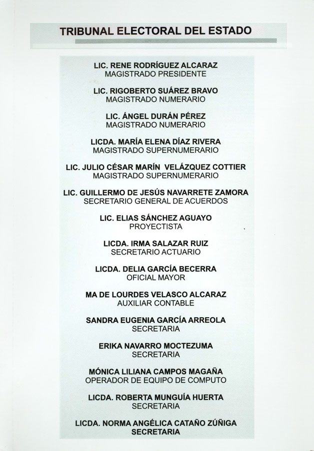 A cuatro meses de iniciar la celebración de la jornada electoral relativa al proceso comicial del año 2006, en la que en nuestro Estado tendremos elecciones concurrentes con las federales, quienes integramos el Tribunal Electoral, nos permitimos poner a su amable consideración una Compilación Legislativa Electoral, cuyo contenido se conforma con los artículos que relacionados con la materia electoral establece nuestra Constitución Política de los Estados Unidos Mexicanos, la Constitución Política del Estado libre y Soberano de Colima, el Código Electoral del Estado, la Ley Estatal del Sistema de Medios de Impugnación en Materia Electoral, el Reglamento Interior del Tribunal Electoral, la Ley del Municipio Libre del Estado de Colima en su parte conducente y los artículos del Código Penal del Estado relativos a los delitos electorales, buscando que la ciudadanía en general y en especial los partidos políticos cuenten en un solo texto con toda la legislación aplicable en un proceso electoral, que les permita acceder fácilmente a la normatividad necesaria para la debida defensa del voto del ciudadano.