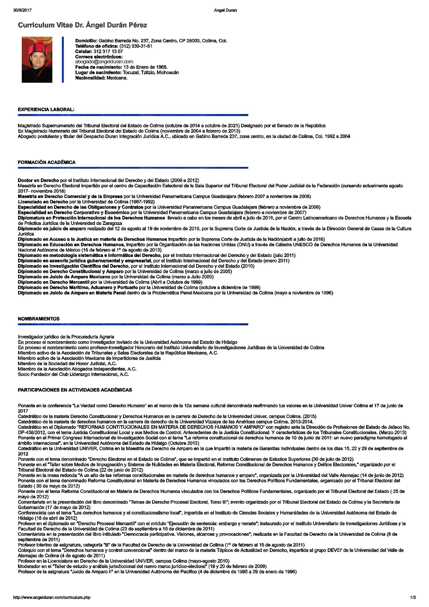 Curriculum Vitae, Dr. Ángel Durán Pérez