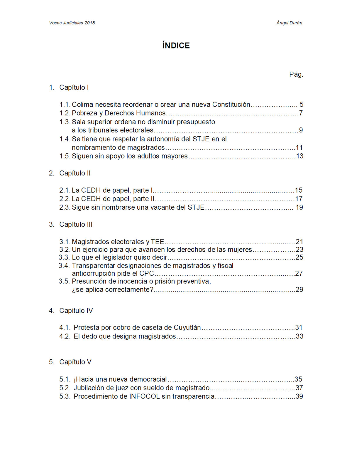 El lector encontrará en esta revista, a una serie de publicaciones que, como columnista del medio de comunicación Ecos de la Costa, estuve realizando cada mes, durante todo el año. El contenido de esta revista es eminentemente jurídico, dada mi especialidad y amparados en la libertad de expresión. Cada vez más, se observa a los jueces salir de sus escritorios y a opinar ante la sociedad civil, sobre sus pensamientos ideológicos; mi pensamiento ideológico que, como Magistrado Supernumerario del Tribunal Electoral del Estado de Colima, tiene como objetivo principal la difusión de temas jurídicos y con la idea de difundir el pensar de un juez electoral, que garantiza la democracia en México.