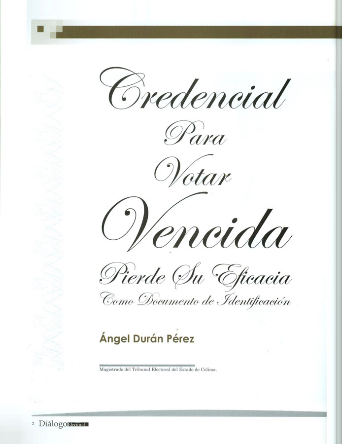 Recientemente, la Sala Superior del Tribunal Electoral del Poder Judicial de la Federación emitió una tesis de jurisprudencia respecto del valor jurídico que se le debe otorgar a la credencial para votar con fotografía vencida. En ésta se dispone lo siguiente (1 ):